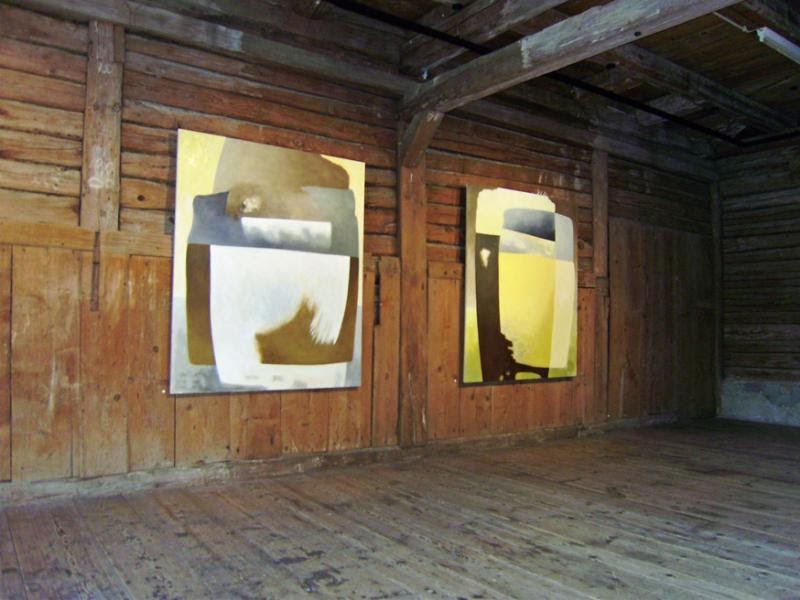 Regula Sonderegger (Zeichnungen) und Franziska Etter (Malerei) haben mit dem Projekt „sprachschuppen“ die Gemeinsamkeiten und Differenzen von Bild und Sprache untersucht, unter Einbezug der Farben der Remise; entstanden sind Malereien, Zeichnungen und Wortbilder.