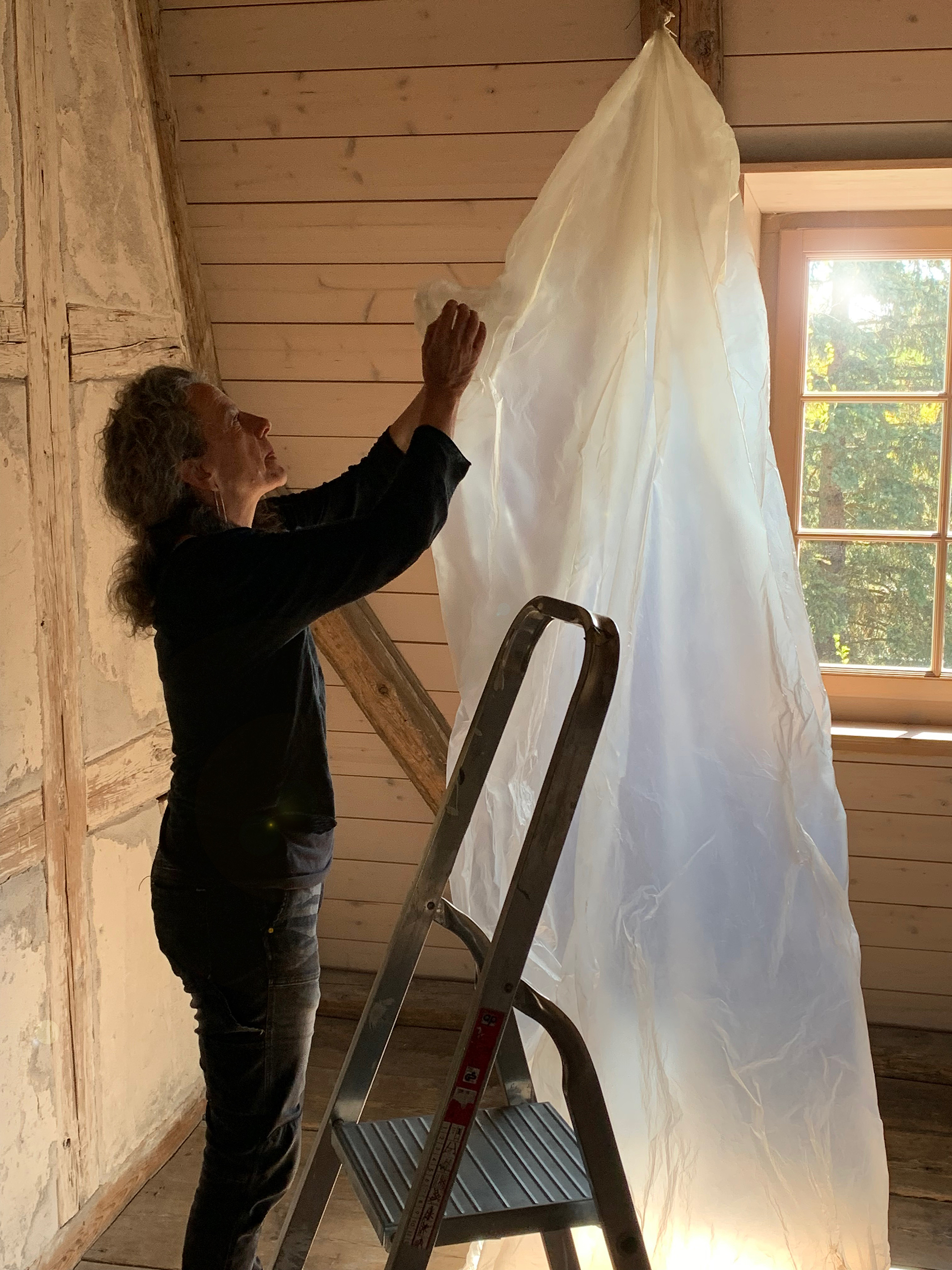 Rechts: Eine Aufnahme von Katharina Henking beim Ausprobieren