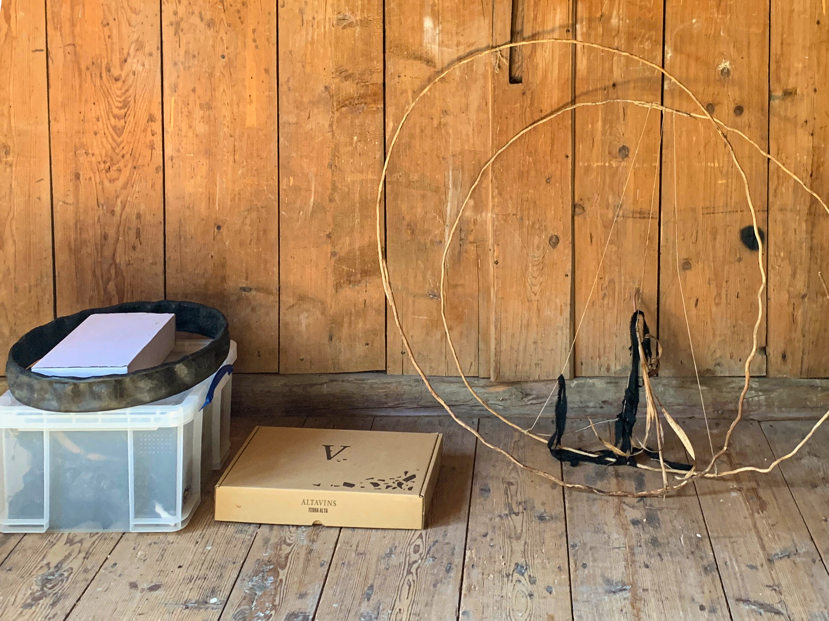 Links Oben: Eine Aufnahme mit Materialien von Katharina