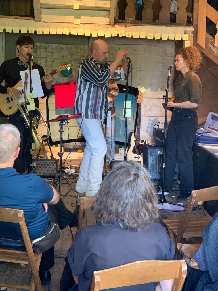 Eingeladen war das Künstlerkollektiv Antipro aus Winterthur bestehend aus: Vincent Hofmann, Mira Frehner, Reto Karli und Raphael Winteler. Ab 15 Uhr begann das Kollektiv, musikalisch und performativ auf die verwobene Hausinszenierung zu reagieren.