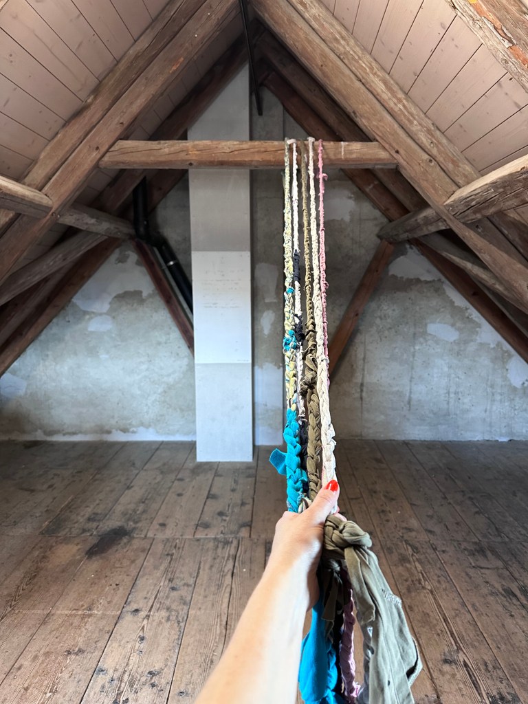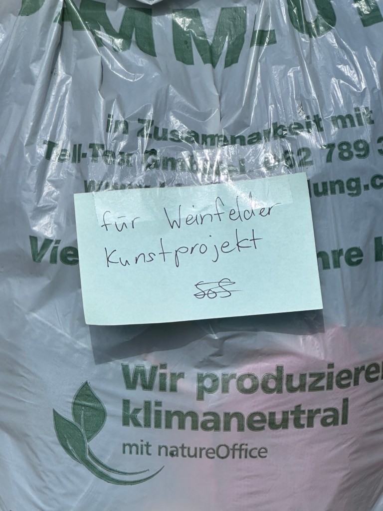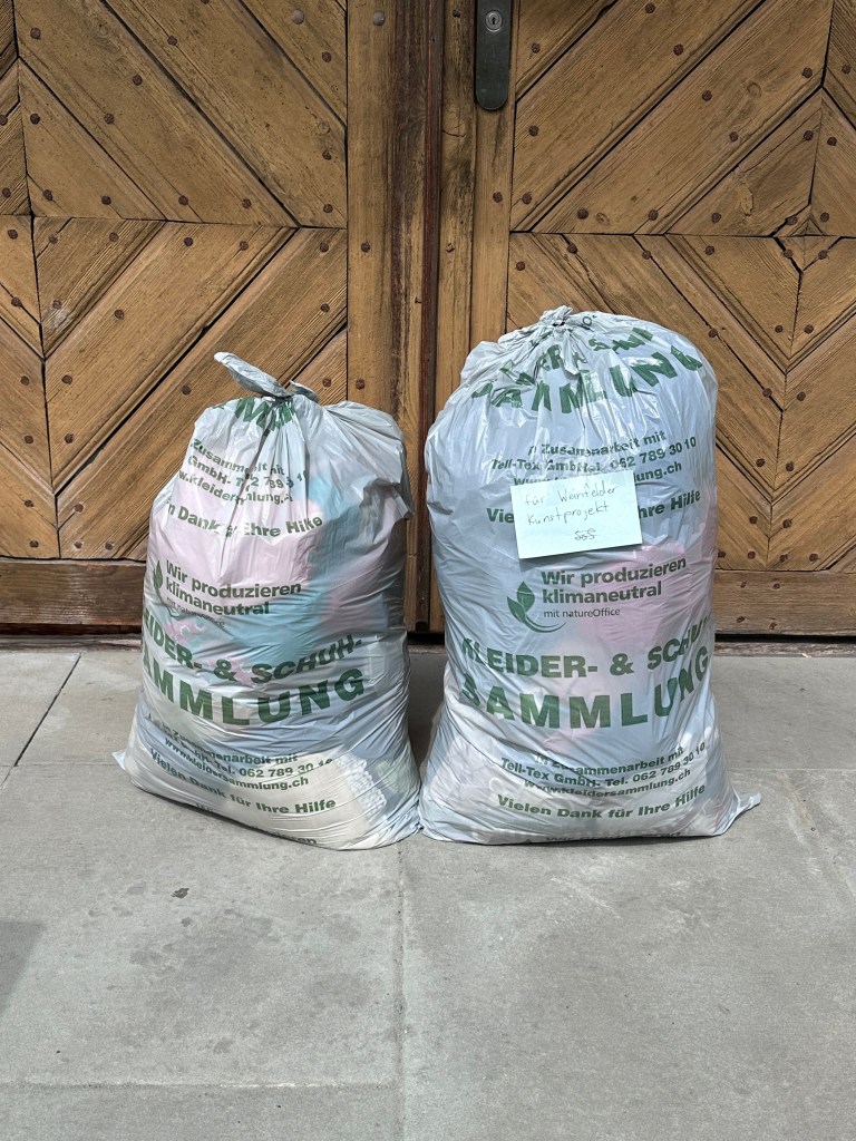 Die Künstlerin Andrea Vogel hat viele Stoffe von euch aus Weinfelden bekommen. Sie bereitet alles sorgfältig vor und schaut sich die Teile genau an. Das ist für die Künstlerin sehr inspirierend. Der Raum fühlt sich wieder lebendig an, ein Erwachen ist spürbar. Bald können interessierte Menschen die Entwicklung der Kunstwerke direkt auf Instagram oder vor Ort sehen.