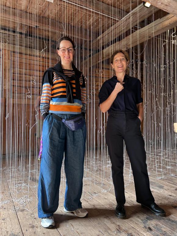 Im Sommeratelier 2025 in der Remise Weinfelden arbeiten die Künstlerinnen Beatrice Dörig und Agatha Zobrist zusammen an einer großen Installation. Ausgangspunkt ist die Idee der Linie – als Zeichen, Sprache und Verbindung zwischen Menschen.