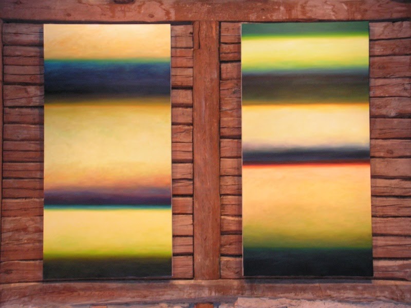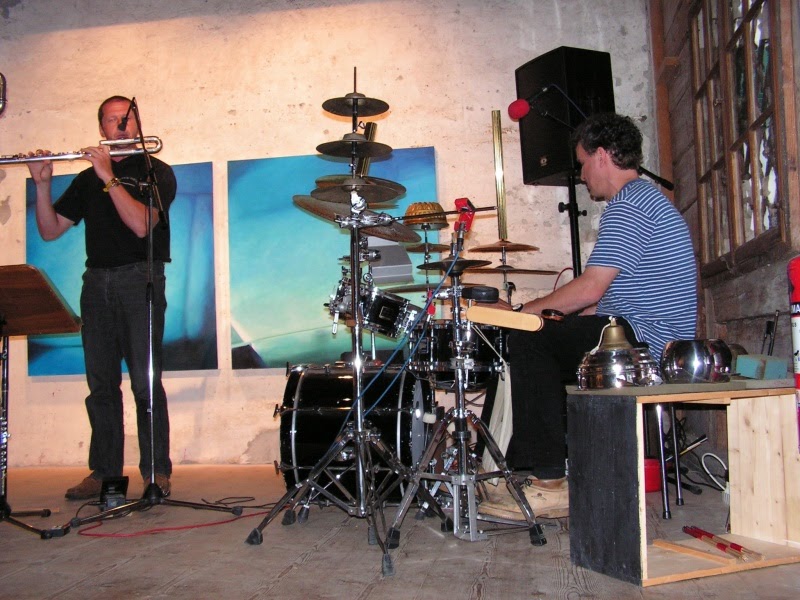 Mark Huber ordnete allen Räumen mit grossformatigen Malereien eine Farbstimmung zu: blau, rot, grün, gelb und weiss. In Ergänzung dazu entwickelte er einen akustischen Klangteppich, der durch das ringhörige Haus ertönte, mal leise und kaum vernehmbar, mal überraschend- irritierend bis lautstark.