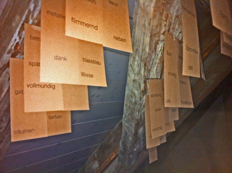 Regula Sonderegger (Zeichnungen) und Franziska Etter (Malerei) haben mit dem Projekt „sprachschuppen“ die Gemeinsamkeiten und Differenzen von Bild und Sprache untersucht, unter Einbezug der Farben der Remise; entstanden sind Malereien, Zeichnungen und Wortbilder.
