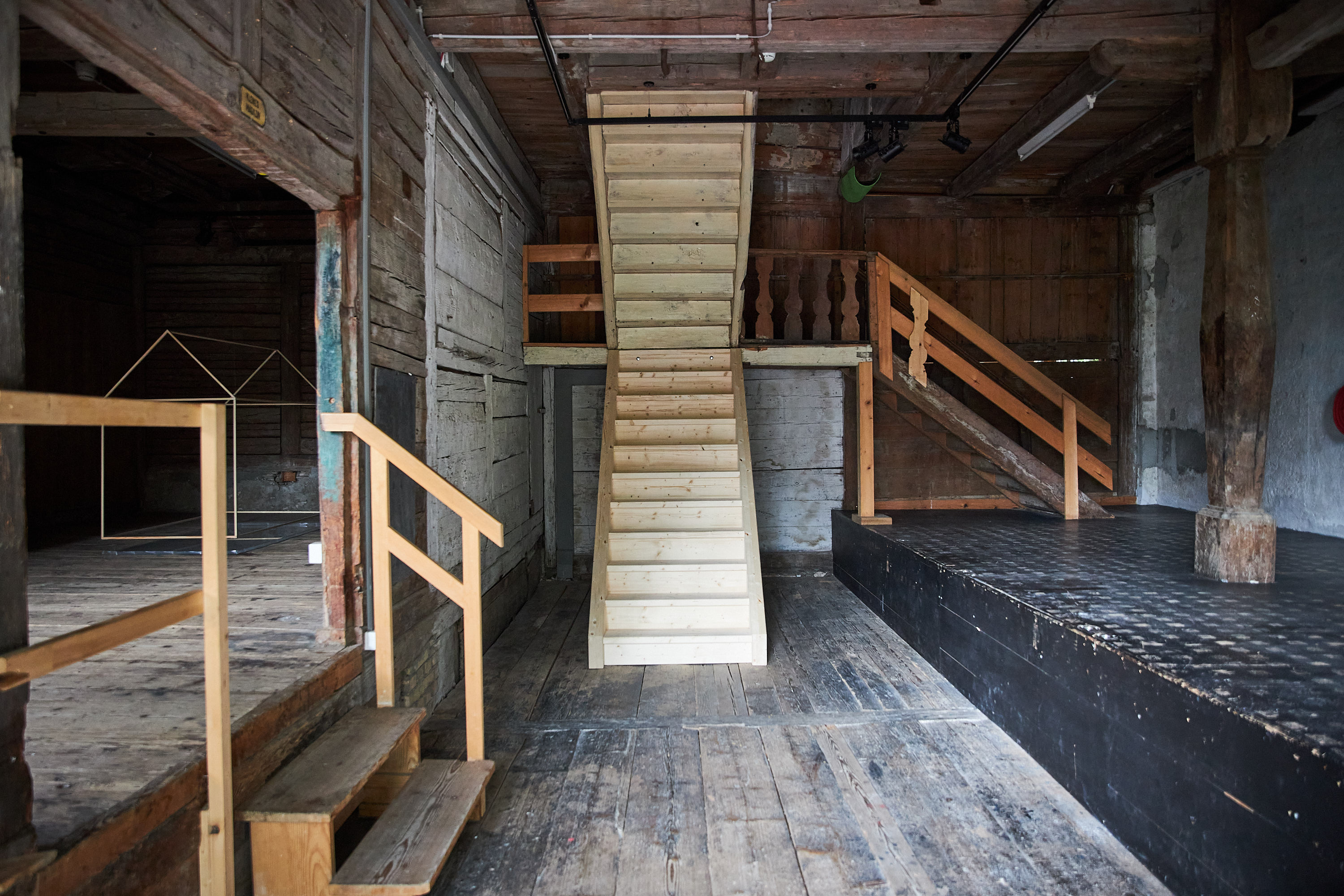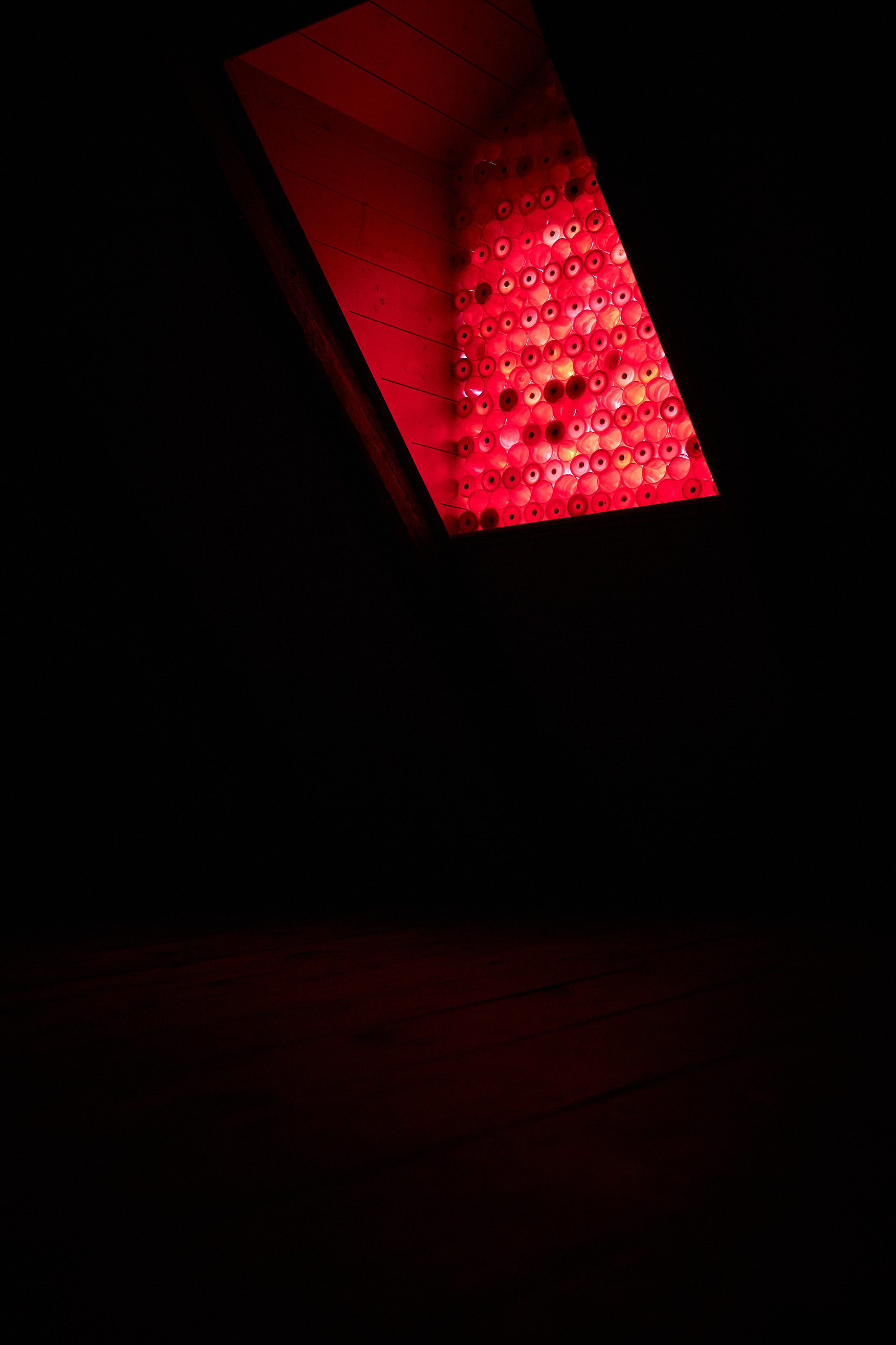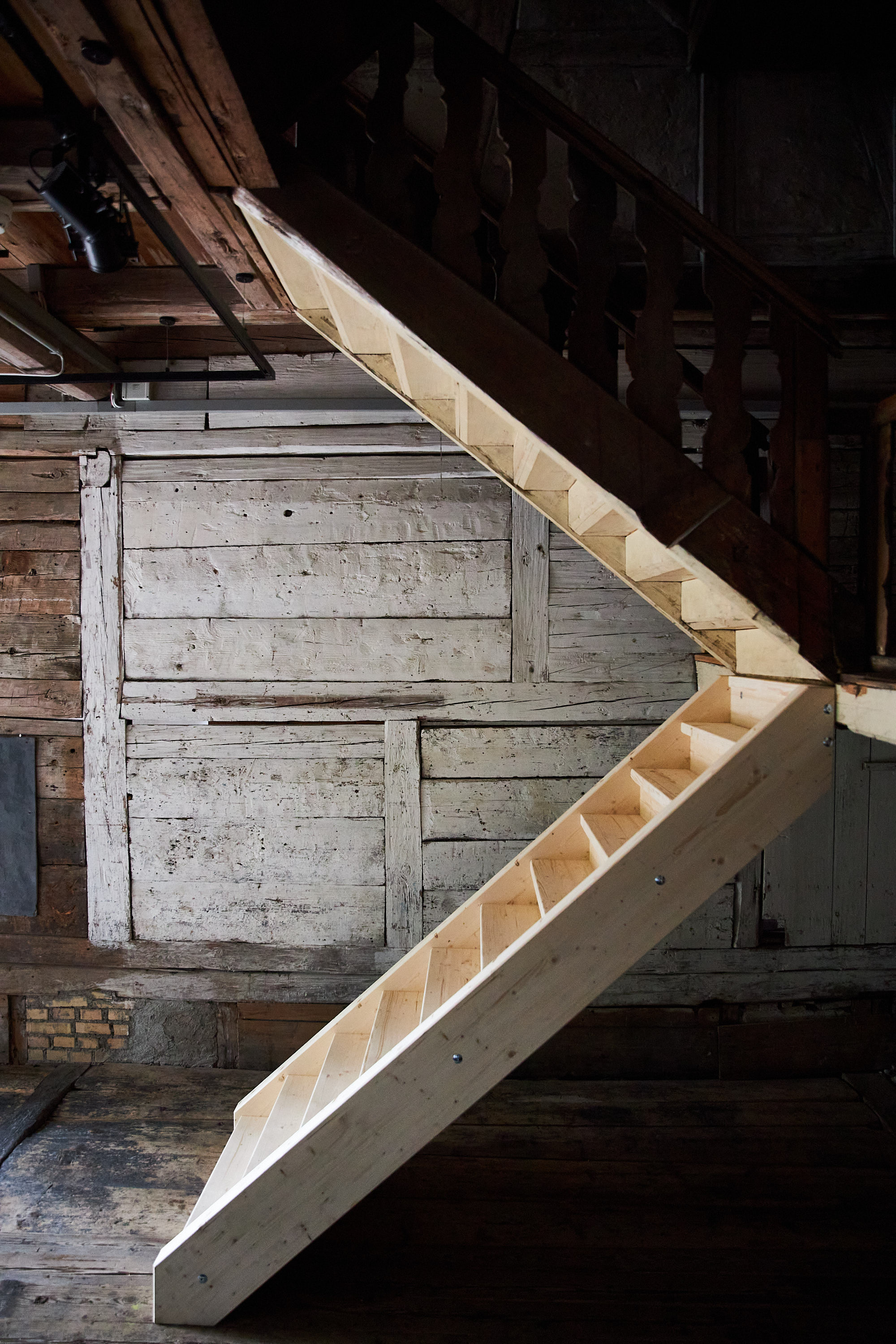 Ruth Erat, Gabriela Falkner, Beate Rudolph und Cristina Witzig im Sommeratelier Weinfelden eine ortsspezifische Remise-füllende Installation vom Erdgeschoss bis in den Dachstock.